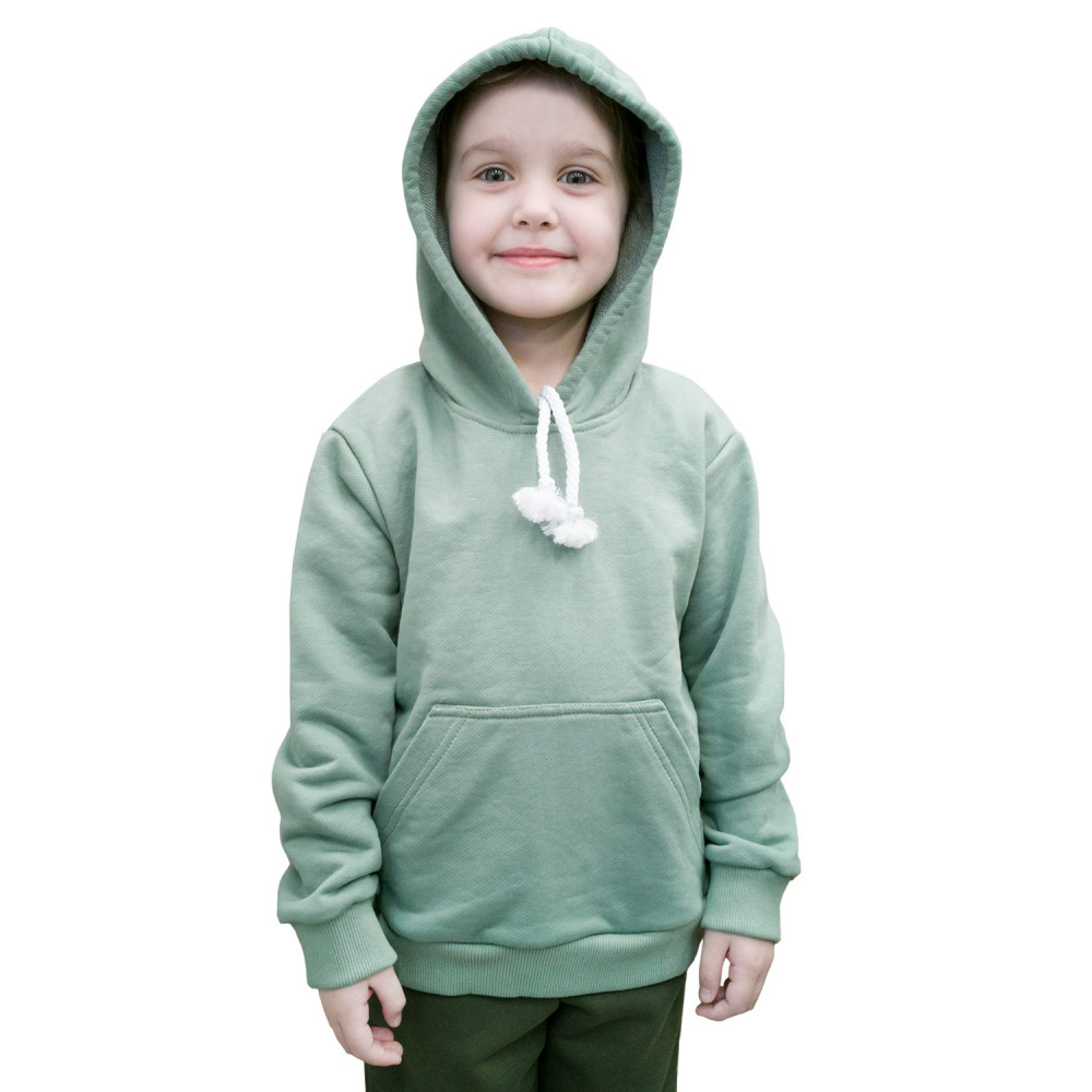 Детская толстовка с капюшоном имеет простой и элегантный дизайн одного цвета, что делает ее идеальным выбором для различных образов и стилей. Капюшон добавляет дополнительную защиту от ветра и холода, а также создает стильный акцент.