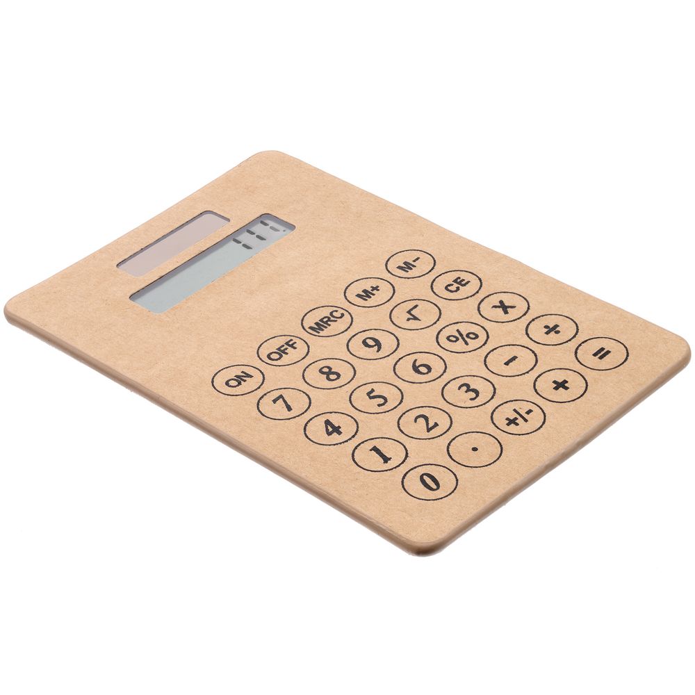 Компактный калькулятор из крафтового картона с крупными клавишами.