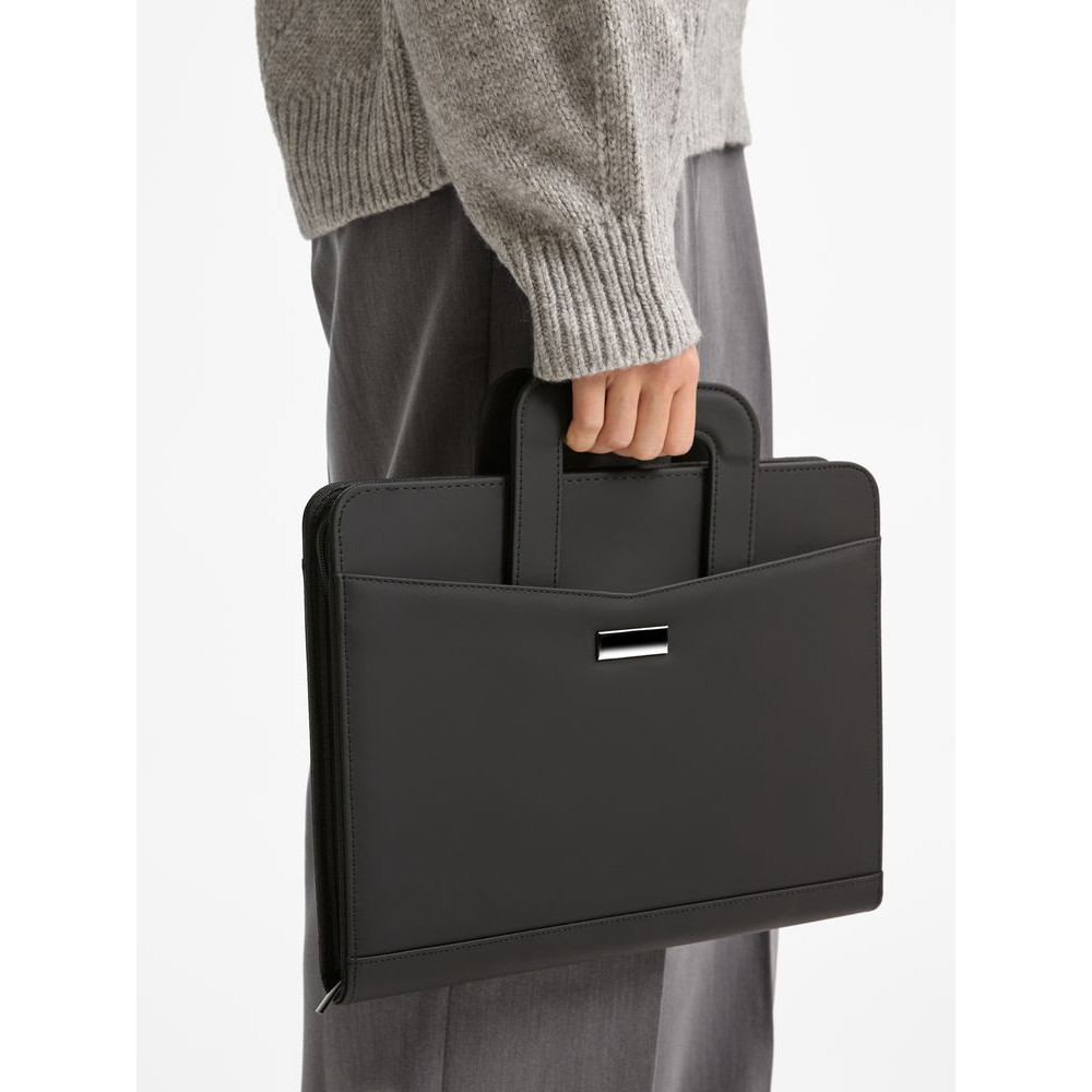 Во вместительной папке предусмотрено множество отделений для визиток, бумаг и письменных принадлежностей — для идеальной организации пространства. Особое преимущество — встроенный блокнот с листами в линейку, который можно легко открепить и положить на его место свои записи, например, для презентаций.