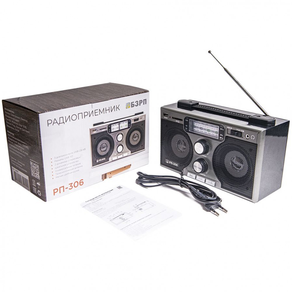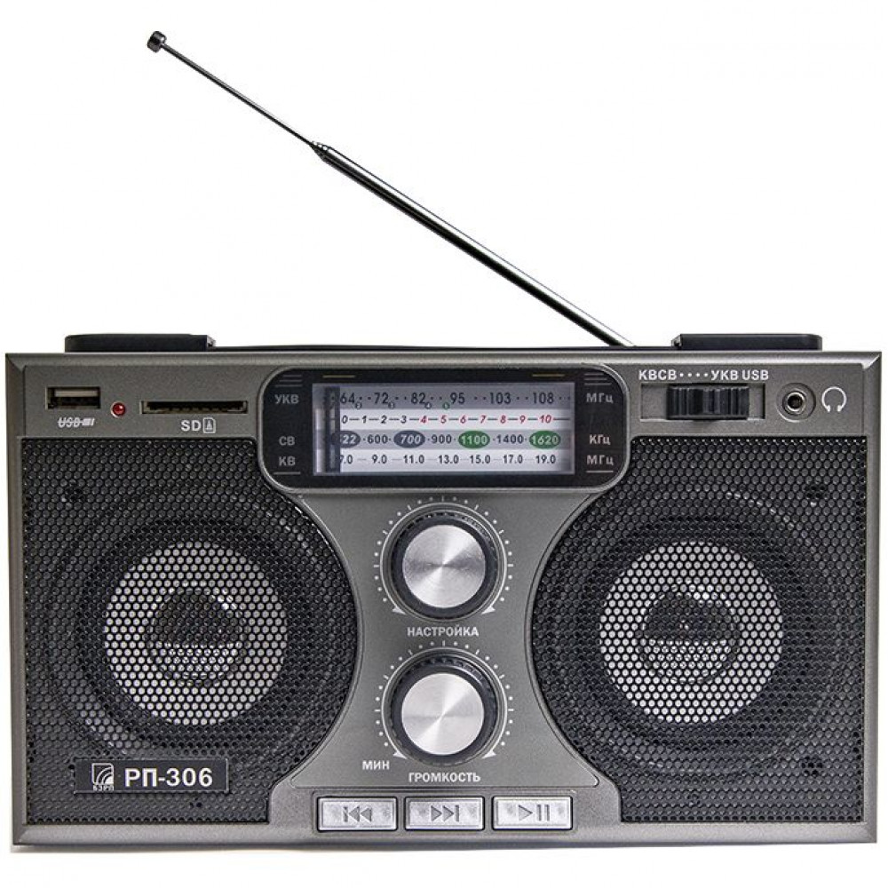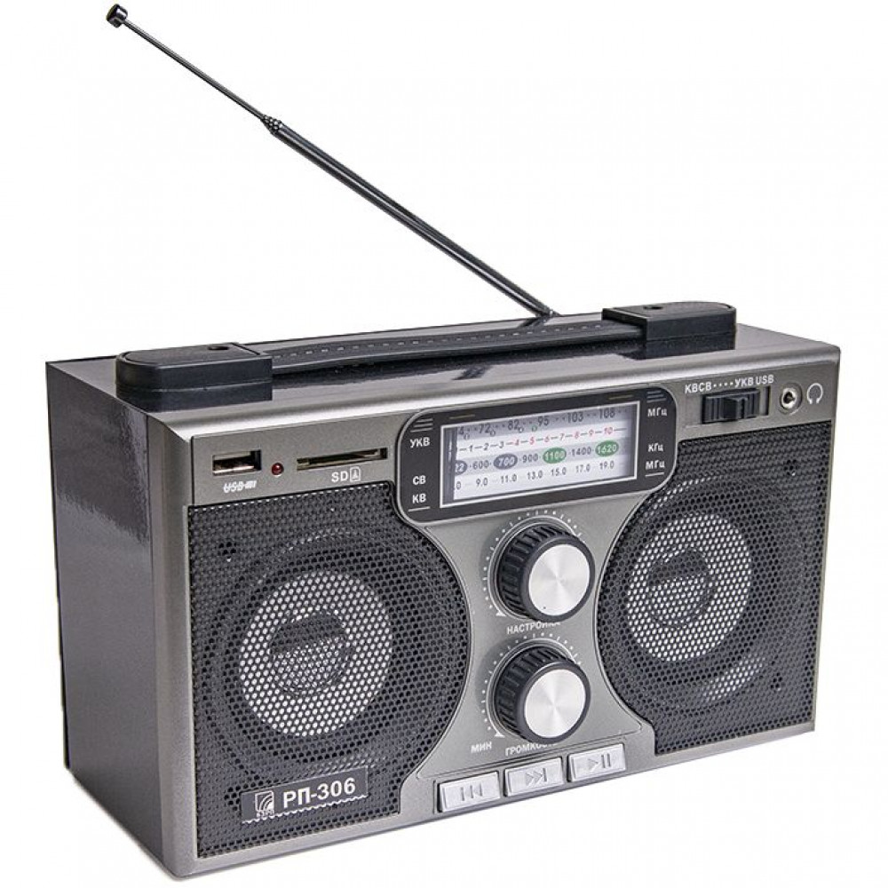 • УКВ в диапазоне 64–108,0 МГц, СВ в диапазоне 520–1620 КГц, КВ в диапазоне 7,0–19,0 Мгц