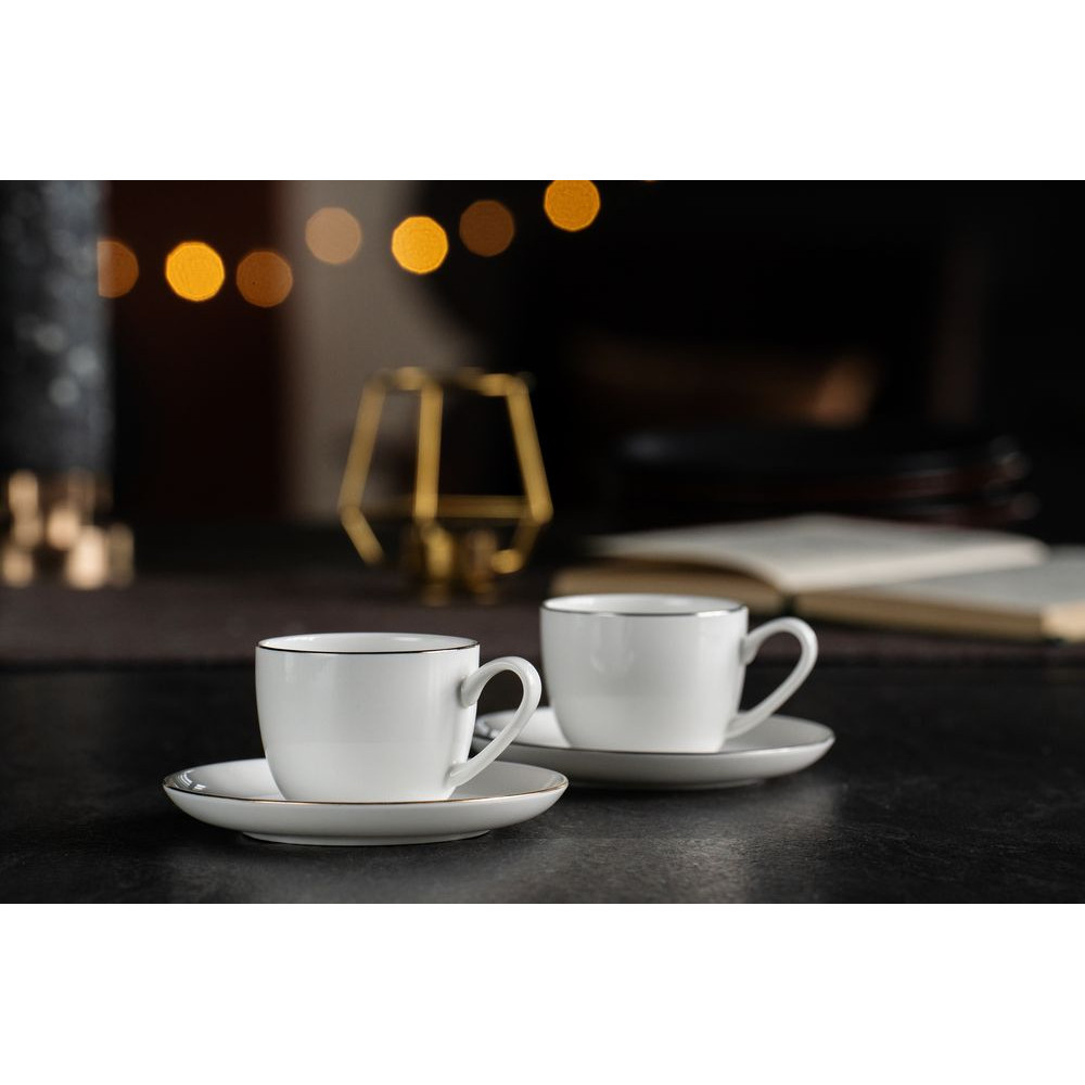Кофейная пара Select, белая с серебристой отводкой