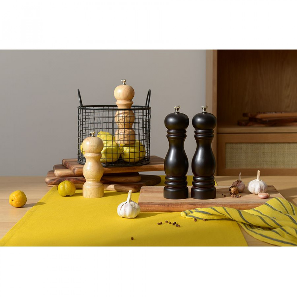 Классическая мельница для перца поможет во время приготовления любимых блюд и украсит стол при подаче. Корпус эргономичной формы выполнен из каучукового дерева — натурального материала повышенной прочности, который полностью безопасен для здоровья. Износостойкие жернова из качественной керамики хорошо измельчают кристаллы до состояния порошка. Степень помола можно регулировать.