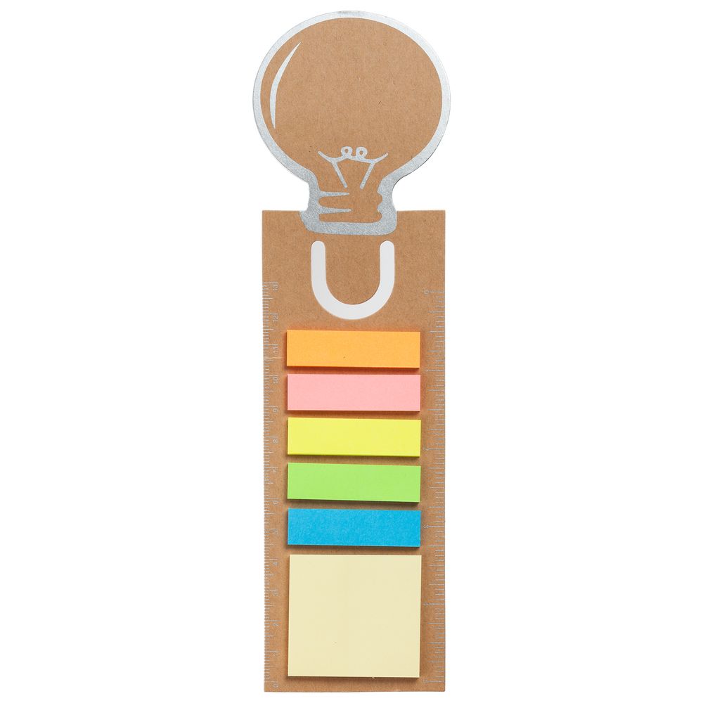 На одной из сторон закладки линейка в сантиметрах, на другой — в дюймах. В комплекте 6 видов самоклеящихся листков, по 20 каждого вида.