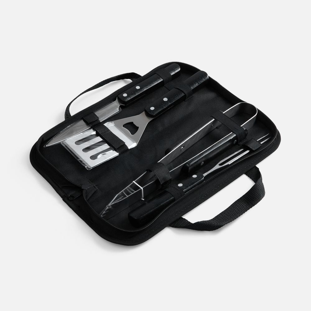 В набор входят: щипцы, вилка, лопатка и нож.
