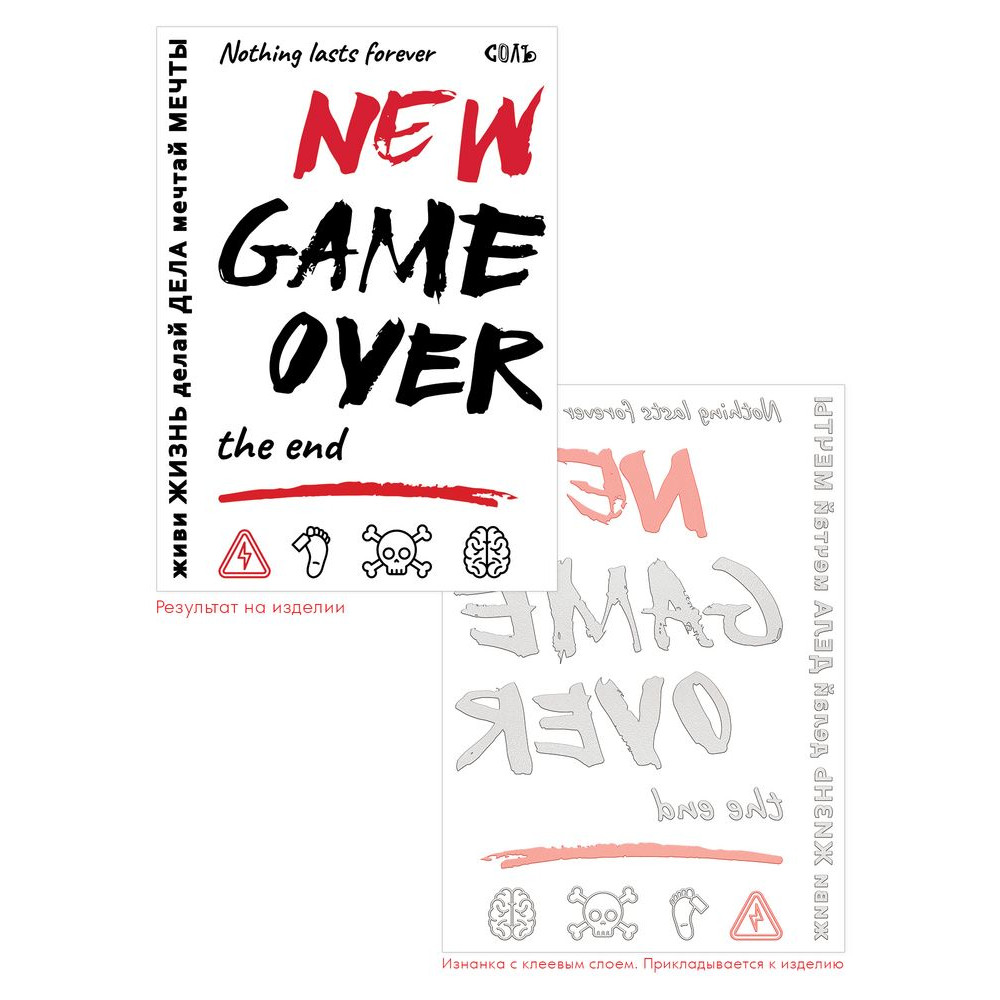 Слово — не воробей, вылетит — не поймаешь. Зато его можно припарить утюгом. Тогда оно станет стильным дополнением образа. Татуировки для одежды как новый способ проявить себя.В комплект входят две маски в индивидуальном пакете, два листа с термонаклейками и инструкция по использованию термонаклеек.