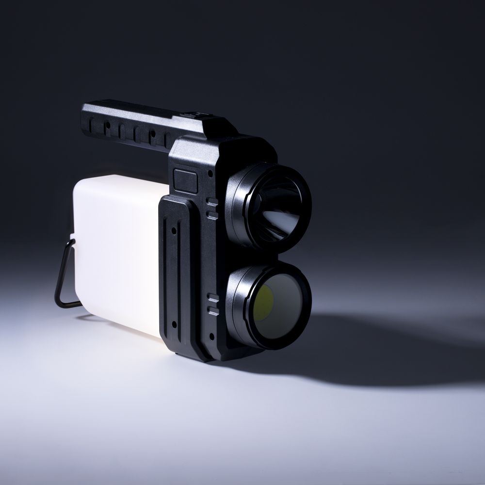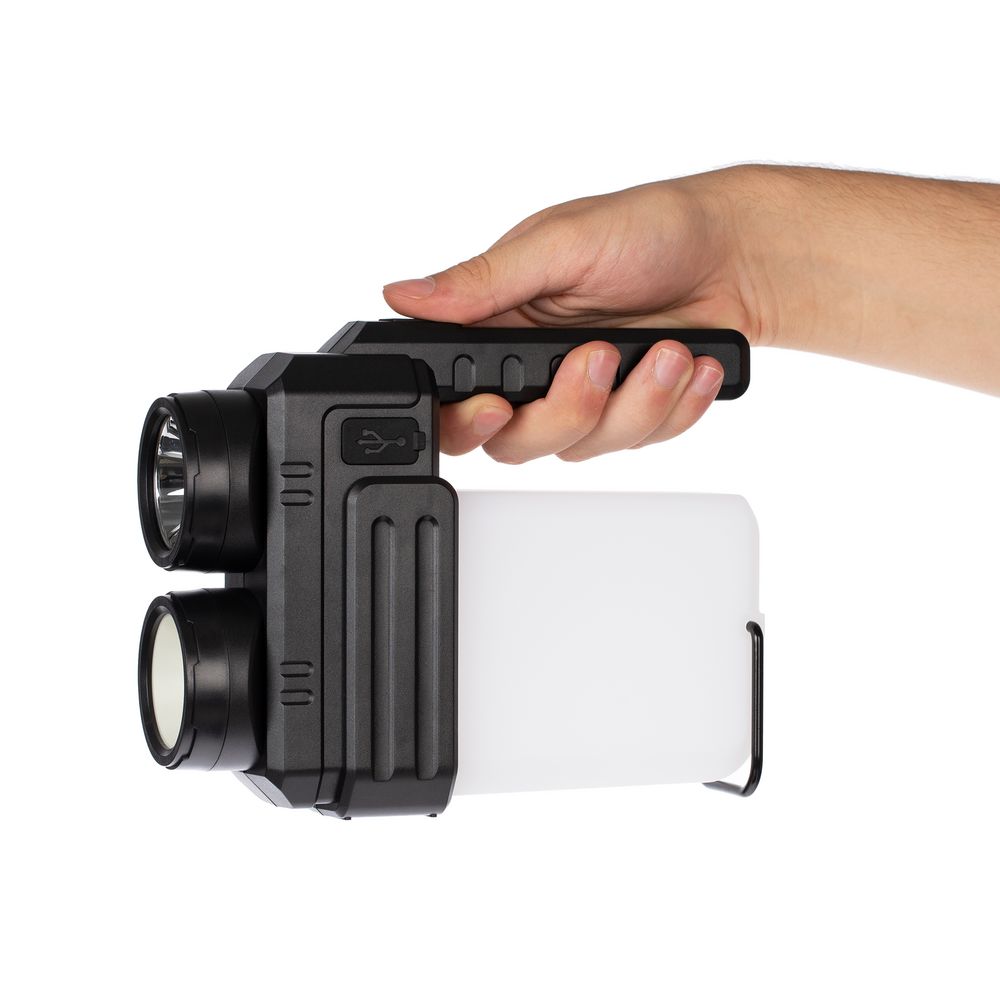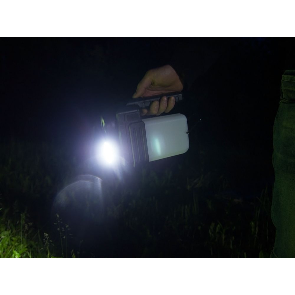 • Рассеянный луч света — светодиод COB мощностью 400 лм, дальность светового луча до 25 м, время работы до 4 ч