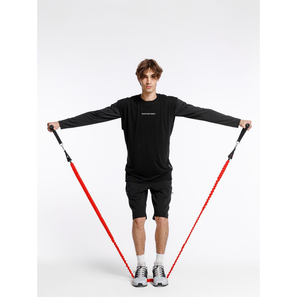 В набор входят 3 трубчатых эспандера с разной степенью нагрузки от 6,8 до 15,8 кг. Меняя и комбинируя их, можно усиливать или ослаблять нагрузку во время тренировки.